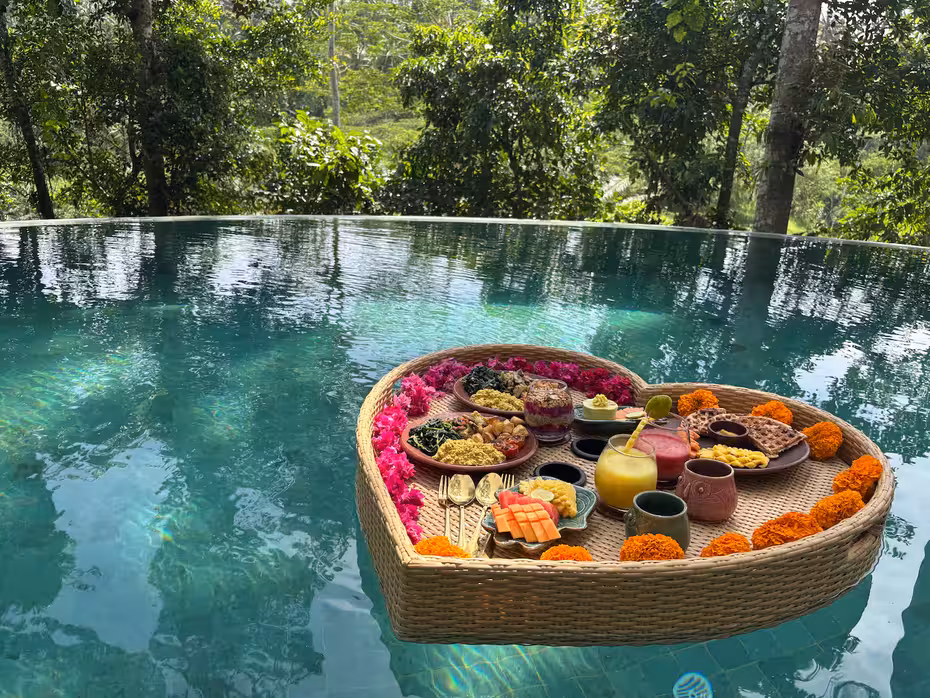 ... Enjoy a floating breakfast in your private jungle pool (only for the 3-bedroom villa)